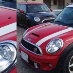 BMW MINI F55 5doorに、ハの字ストライプとチェッカーサイドライン施工