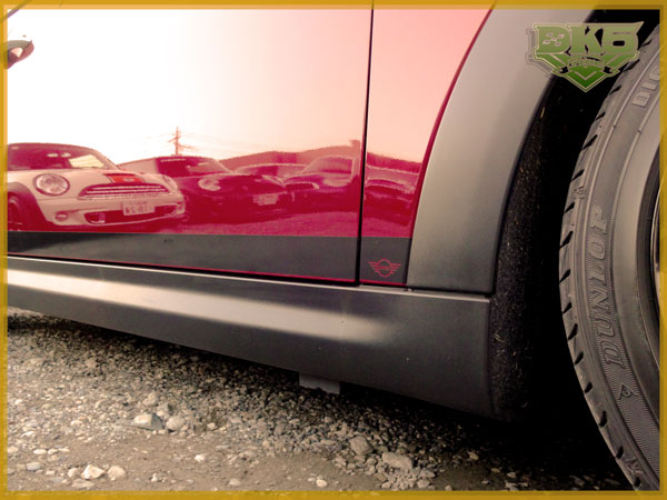 BMW MINIサイドストライプ, オーダーメードデザインステッカー, 制作例のご紹介 BMW MINI R55 に、サイドラインを施工です! 2015年10月29日 / BMW MINI R55 に、サイドラインを施工です! 埼玉県上尾のDK5です。 今回はデザインをお持ちになったものを調整し施工しました。 ボディーサイドにシンプルにラインを施工です。 黒地に切り抜きでロゴを入れたので、ロゴ部分はボディー色で表現されています。 サイドにラインを入れることにより、雰囲気変わって良いですね。