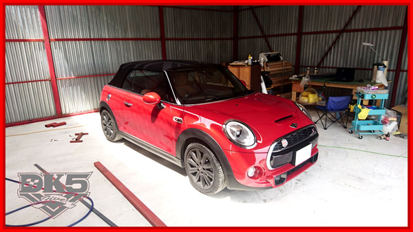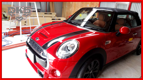 BMW MINI F57 コンバーチブルにボンネットストライプを施工しました。
