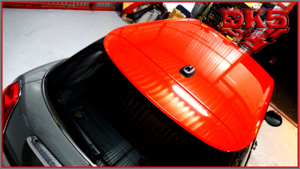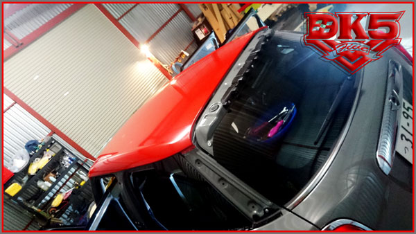 外せるものは外して施工です。(ルーフアンテナ、リアスポイラーなど)