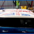 ルーフステッカー BMW MINI F55 5ドア ルーフステッカー 2016年8月8日 / 埼玉県富士見市のDK5です! BMW MINI F55 5ドア ルーフステッカーに、ルーフステッカーを施工しました! ルーフ自由化計画であったものはF55用は無かったので、F55用に作って欲しいとのご要望でした。 全ての文字をカッティングステッカーで制作。 ルーフのホワイトを活かし、レッドとブルーのカッティングステッカーで制作しています。 カッティングデータ作成に数日、施工12時間。 大変長い時間、お待ちいただきましてありがとうございましたm(_ _)m