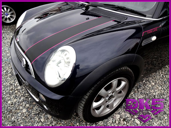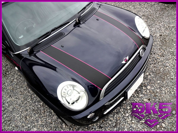 BMW MINI ボンネットストライプ, 制作例のご紹介 BMW MINI R50にボンネットストライプを施工致しました! 2016年8月14日 / 埼玉県富士見市のDK5です。 BMW MINI R50にボンネットストライプを施工致しました! サイドスカットルのパークレーンステッカーもボンストに合わせて制作。 カーボンシートをメインにマゼンダでピンスト。 R系だと定番の、エンブレムの剥がれもございましたので、ボンストと同じカラーで合わせてみました。 差し色はピンストでお好きなカラーを入れると個性が出ますね。