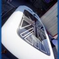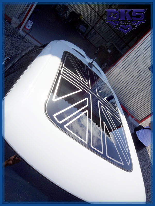 純正ストライプが端まで入って無いので、純正に合わせて、ラインに丸みを付けて制作しました。