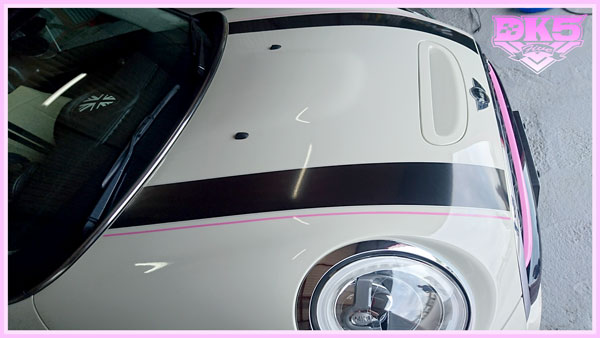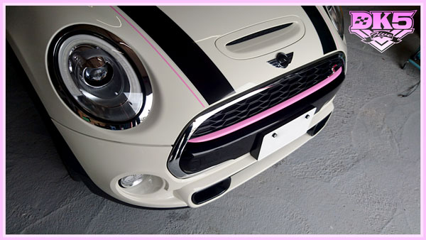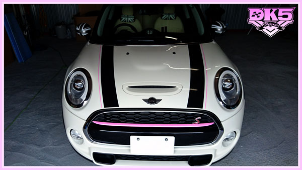 BMW MINI F56の純正ストライプをカスタマイズと、フロントグリルモールをラッピングしました。