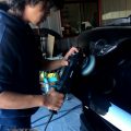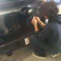 エンブレムを剥がして両面テープが残るので、専用の溶剤で両面テープの糊を落とします。
