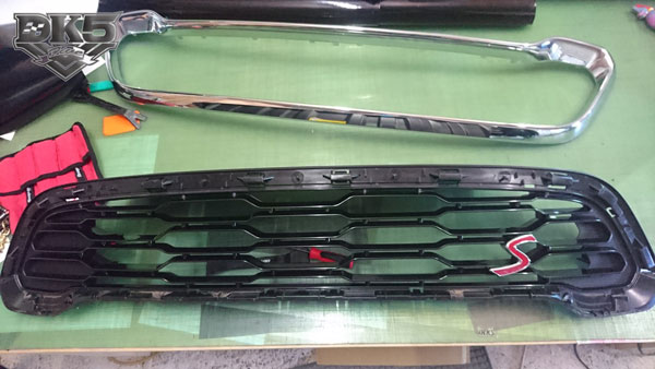 フロントグリルの「S」マークはネジ止めかと思ったら、接着されてました。
