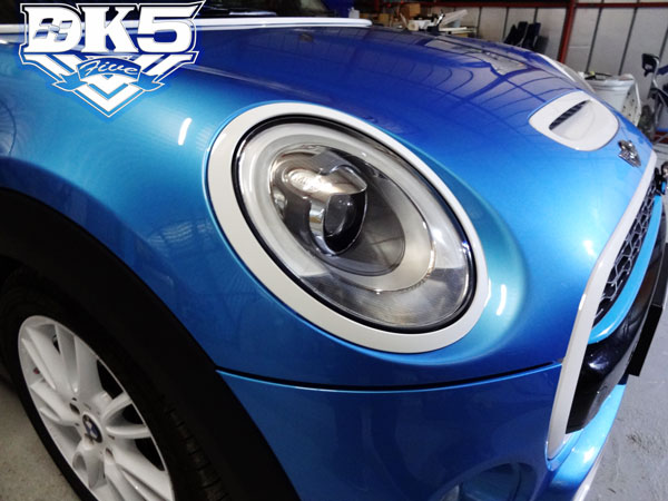 BMW MINI グリルラッピング, BMW MINI パーツラッピング, BMW MINI モールラッピング, 制作例のご紹介 BMW MINI F56 メッキパーツ ホワイト化 2017年1月15日 / 埼玉県富士見市のDK5です。 BMW MINI F56 メッキパーツをホワイト化しました。 施工部分はこちらです。 窓下モール フロントヘッドライトリング テールライトリング フロントバンパーグリルモール トランク リッド グリップ フロントバンパーモール(水色) 施工前 すでに白いパーツは塗装で仕上げてありました。 施工後 ブルーのボディーカラーに白が映えますね。 可愛く仕上がりました!