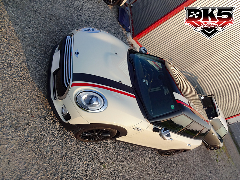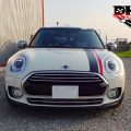 BMW MINI ボンネットストライプ, ルーフステッカー, 制作例のご紹介 BMW MINI F54 クラブマン アウトサイドストライプ 2017年7月24日 / 埼玉県富士見市のDK5です。 BMW MINI F54 クラブマン アウトサイドストライプです。 ボンネットは、半ツヤブラックとレッドで施工 ルーフはペッパーホワイトに近いフィルムで。 ルーフメインストライプ部分に大きく「CLUBMAN」です。 少し手を加えることにより、同じストライプでも印象が変わりますね。
