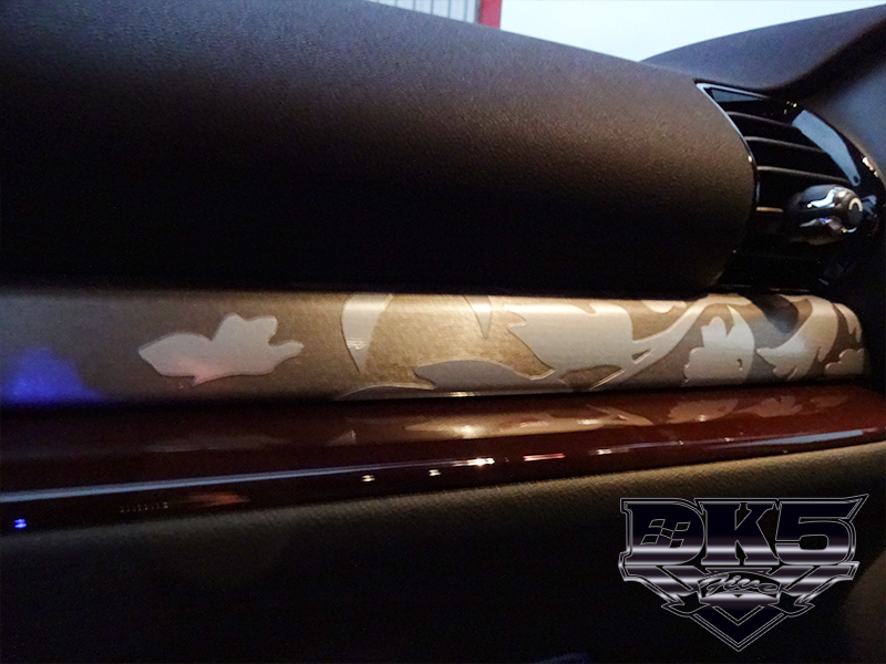 BMW MINI パーツラッピング, 制作例のご紹介 BMW MINI F54 クラブマン ダッシュボードパーツのラッピング 2017年8月9日 / 埼玉県富士見市のDK5です。 BMW MINI F54 クラブマン ダッシュボードパーツのラッピングです。 お客様のご要望により、ラッピングして色を変えるだけだとつまらないってことで制作。 レンジローバー イヴォークのオプション内装にあるような、アーツアンドクラフツ風にアレンジしました。 施工前 ラッピングフィルムと、カッティングステッカーの組み合わせで、この様な仕上げに。 模様が浮き出るように加工してます。 模様が入って、かなり高級感が増しました。