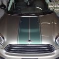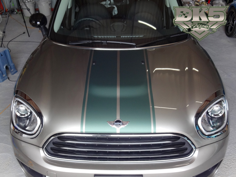 BMW MINI ボンネットストライプ, 制作例のご紹介 BMW MINI F60 クロスオーバー センターボンスト バンパー下部ラッピング 2017年8月9日 / 埼玉県富士見市のDK5です。 BMW MINI F60 クロスオーバー センターボンスト バンパー下部ラッピングです。 シートカラーはマットグリーンを使用 バンパー下部も同じ色でラッピングしました。 施工前 施工中 エンブレム無し エンブレム無しも良いですね。 施工後 このボディーカラーに会う色って、なかなか難しいと思いますが、オーナ様のカラー選択がすばらしく、 かっこよく仕上がりました。