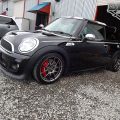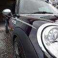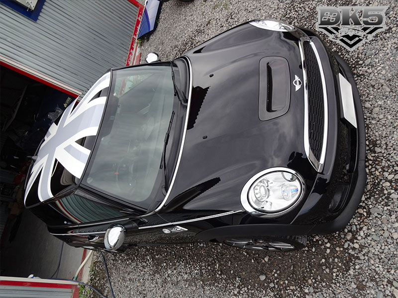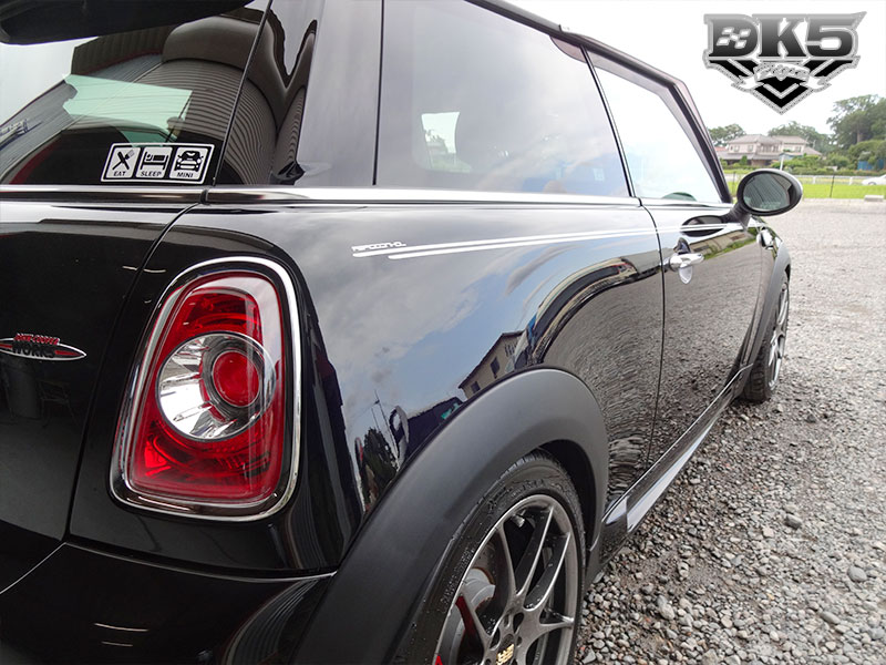 BMW MINIサイドストライプ, 制作例のご紹介 BMW MINI R56 JCW サイドストライプ 2017年8月18日 / 埼玉県富士見市のDK5です。 BMW MINI R56 JCW クラシックミニタイプ サイドストライプです。 ホワイトを使ってシンプルに仕上げました。 施工前 マスキングテープでラインを出していきます。 施工後 マスキングテープに合わせて貼っていきます。 後ろのマークを無くして、文字を入れてみました。