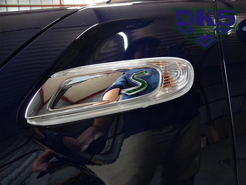 エンブレムのカラーチェンジ、ハンドルカーボン調ステッカー、リアバンパーガードを施工。