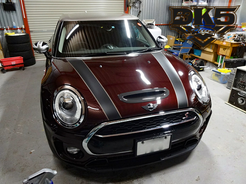 BMW MINI ボンネットストライプ, 制作例のご紹介 BMW MINI F54 クラブマン マットブラックストライプ 2017年12月3日 / 埼玉県富士見市のDK5です。 BMW MINI F54 クラブマン バーガンディーに、ハの字ストライプを施工しました。 メインのカラーはマットブラック ピンスト部分はマットブラウン 落ち着いた感じでシブいクラブマンになりました。 施工後です。 エンブレム部分はピンストで施工したカラーにチェンジです。 実際に店頭でカラー見本を見ていただくと、イメージが湧きやすいです。 お気軽にご来店下さい。
