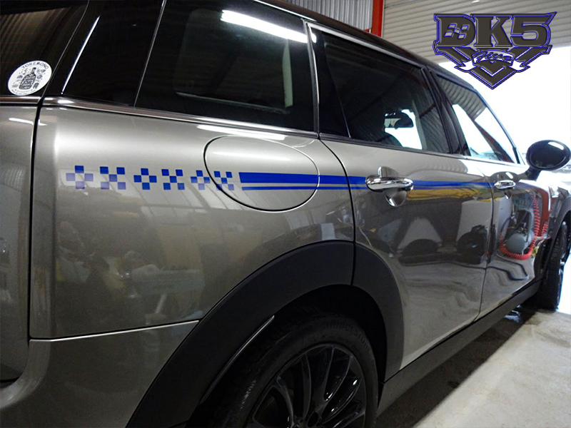 BMW MINIサイドストライプ, 制作例のご紹介 BMW MINI F54CLUBMANにミンサー柄サイドライン+ 2018年3月3日 / 埼玉県富士見市のDK5です。 BMW MINI F54CLUBMANにブルーを使ったサイドラインです。 ミンサー柄には、「いつ(五)の世(四)までも末永く、あなたへの想いは変わらない」 と言った意味が込められています。 そのまま入れると、和の雰囲気が強かったので、すこしアレンジして制作。 施工前 ミンサー柄を取り入れたサイドライン施工後 純正ボンストにミンサー柄でアクセント ミラーに、ミンサー柄を入れ、エンブレムはラインに合わせてカラーチェンジ オーナー様の想いのこもった一台となりました^^