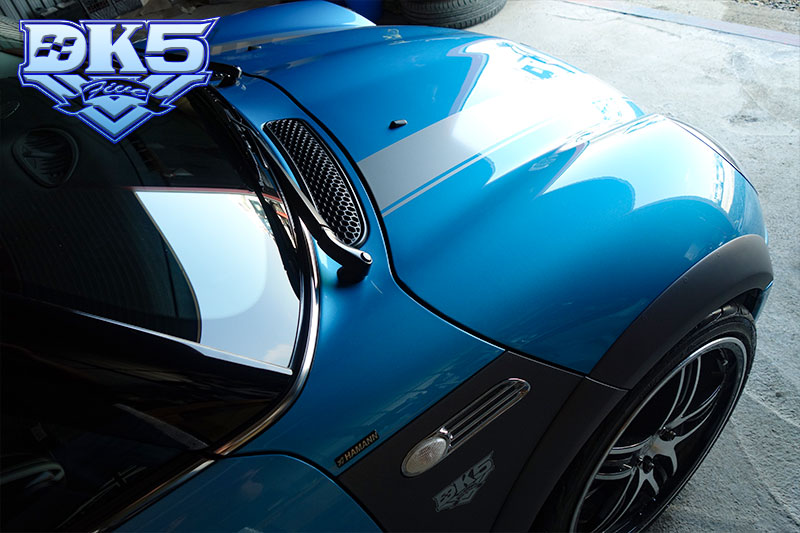 BMW MINI パーツラッピング, BMW MINI ボンネットストライプ, BMW MINIサイドストライプ, オーダーメードデザインステッカー, ボディーメンテナンス, 制作例のご紹介 BMW MINI R50 COOPER に、コーティング、ストライプ、ラッピング他 2018年4月6日 / 埼玉県富士見市のDK5です。 BMW MINI R50 COOPER にいろいろ施工させて頂きました。 HAMANNのエアロが盛りだくさんです。 サイドストライプなど、オリジナルが無いため制作させて頂いてるMINIです。 ボディーコーティング ボンネットストライプ フェンダーラッピング(エンボス加工) GP風ステッカー 前席断熱フィルム フュエールキャップラッピング 仕上がりはギャラリーにて。 とても大切にされてる一台。 おまかせ頂きありがとうございます。