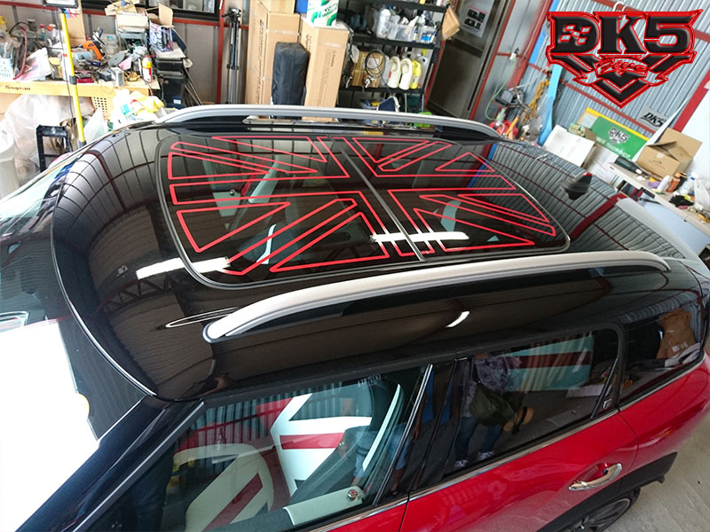 制作例のご紹介 BMW MINI F60 クロスオーバー サンルーフにLINEジャック 他 2018年6月10日 / 埼玉県富士見市のDK5です。 BMW MINI F60 クロスオーバー サンルーフにLINEジャックと内装にちょこっとアクセントです。 こちらのMINIに施工させていただきました。 施工後 LINEジャックをレッドで施工です。 中から見るとこうなるんです。 ルーフスイッチのところにもユニオンジャックです。 サンルーフのLINEジャックは色んな色で制作します。 お気軽にお問い合わせください。