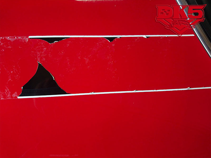 こちらは純正ストライプですが、はがしていくとこのように剥がれていきました。