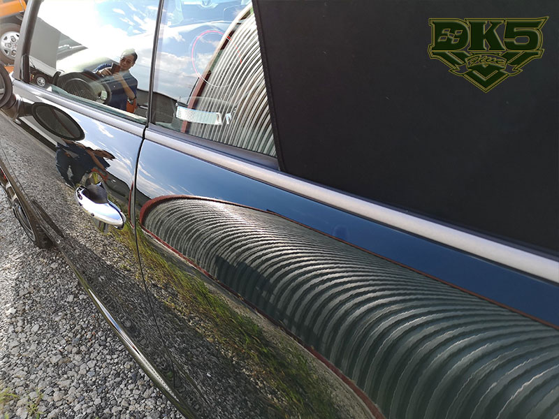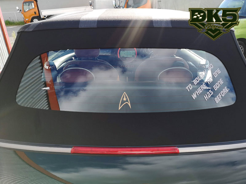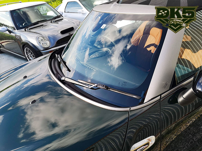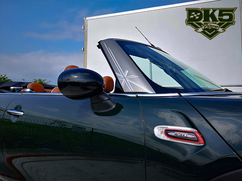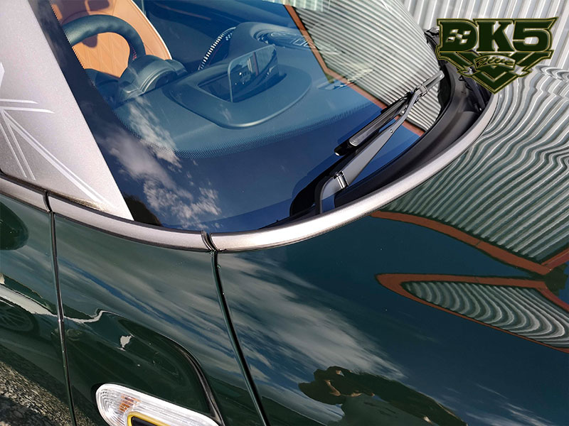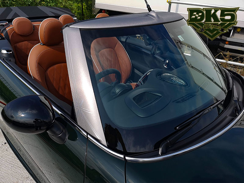 Aピラー部分はユニオンジャックをエンボスで施工してるので、表面がボコッと飛びだしています。