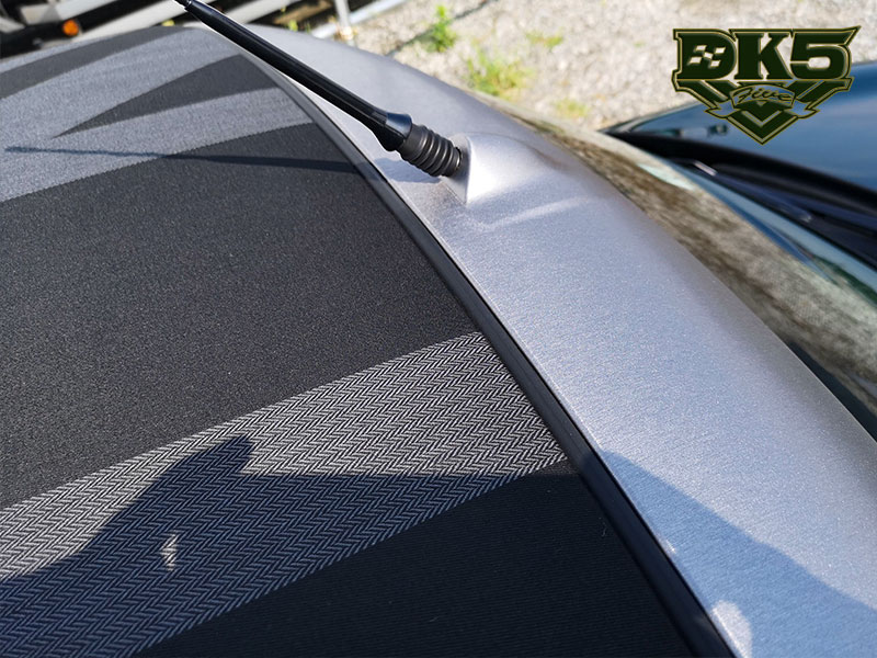 ブラッシュチタニウムを使い、ピラーをラッピングと、窓下モールも同じフィルムで施工させていただきました。