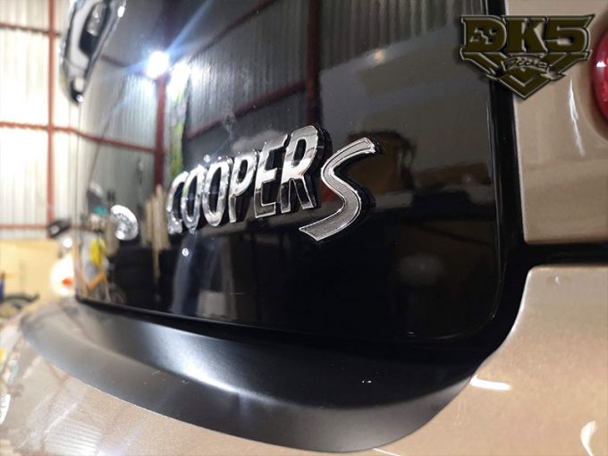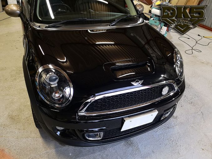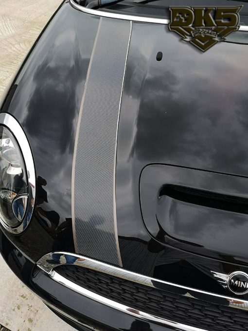 BMW MINI ボンネットストライプ, 制作例のご紹介 BMW MINI R55 CLUBMAN ボンネットストライプ剥がし 2018年11月23日 / 埼玉県富士見市のDK5です。 BMW MINI R55 CLUBMAN 純正ボンネットストライプの剥がし作業です。 端っこがめくれて来てしまってます。簡単に剥がれるかと思ったのですが・・・ 糊が全部残って剥がれてしまいました。剥がし作業はやってみないとわからないです。 糊をおとして、磨いてきれいに。 うしろのエンブレムのカラーチェンジも一緒に施工させていただきました。 古くなったストライプの撤去作業でした。