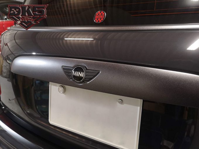 MINIのエンブレムはボディーと同色に塗装。あまり主張しなくなるのでおすすめです。