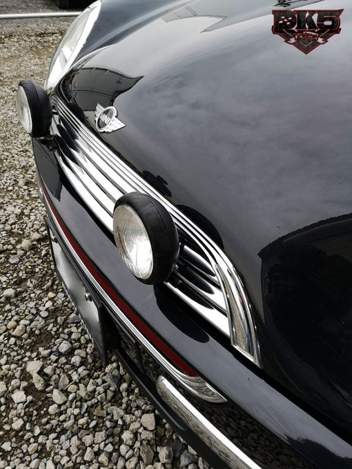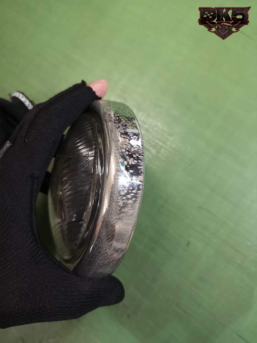 BMW MINI R50 Cooper に取り付けている、アディショナルヘッドライトのメッキ部分が、劣化してしまったのでラッピングで施工させて頂きました。