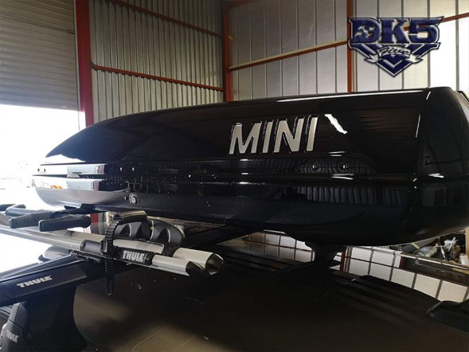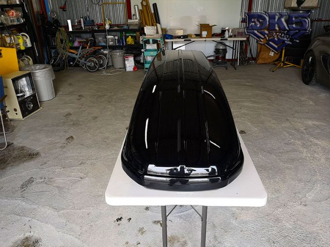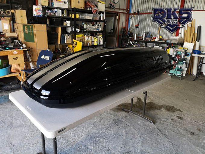 純正のルーフボックス。純正でストライプがあるみたいですが、白か黒らしいので、ルーフに合わせてダークシルバーで制作しました。