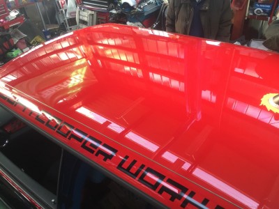 BMW MINI ルーフラッピング, シールラッピング R56JCW ルーフラッピング 2015年1月14日 / 埼玉県上尾市のデカール&オリジナルステッカー製作のDK5です。 今回はR56JCW。 JCWカラーのレッドルーフが特徴のこちらのMINI。 イメージチェンジがしたいとのことで、ルーフラッピングを施工しました。 ただ貼ってしまうのはつまらないので、JCWレッドを差し色に使ってみました。 サイド部分のみを残し、他の部分はラッピングでカラーチェンジ。 ハッチ部分とのつながりを綺麗にラインを出してみました。 ルーフの色が違うと、イメージがかなり変わりますね。