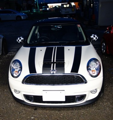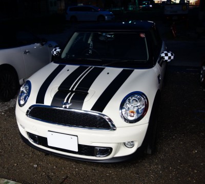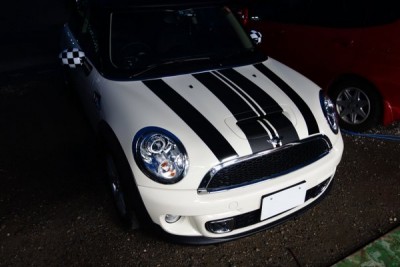 BMW MINI ボンネットストライプ, オーダーメードデザインステッカー, 制作例のご紹介 BMW R56 MINI に、ボンスト全部のせしてみました! 2015年4月2日 / 埼玉県上尾市のデカール&オリジナルステッカー製作のDK5です。 センターストライプと、ハの字ボンストを両方だとどうなるのか!?って事で施工してみました! とっても欲張りなストライプです。 堂々とした面構え。 何人寄せ付けぬオーラ。 勢いが違います。 注)この後、ハの字ボンストの方は剥がしてます。作業途中の写真でした!