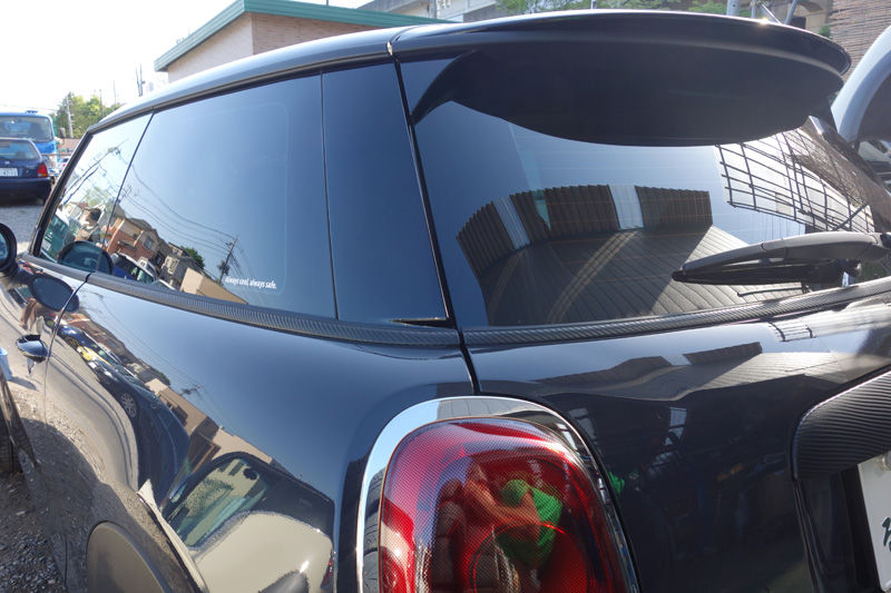 しかしこちらのMINIのオーナさんは、他でやってないことしたいとの事で、ラッピングフィルムのカーボンブラックでのご注文です。