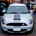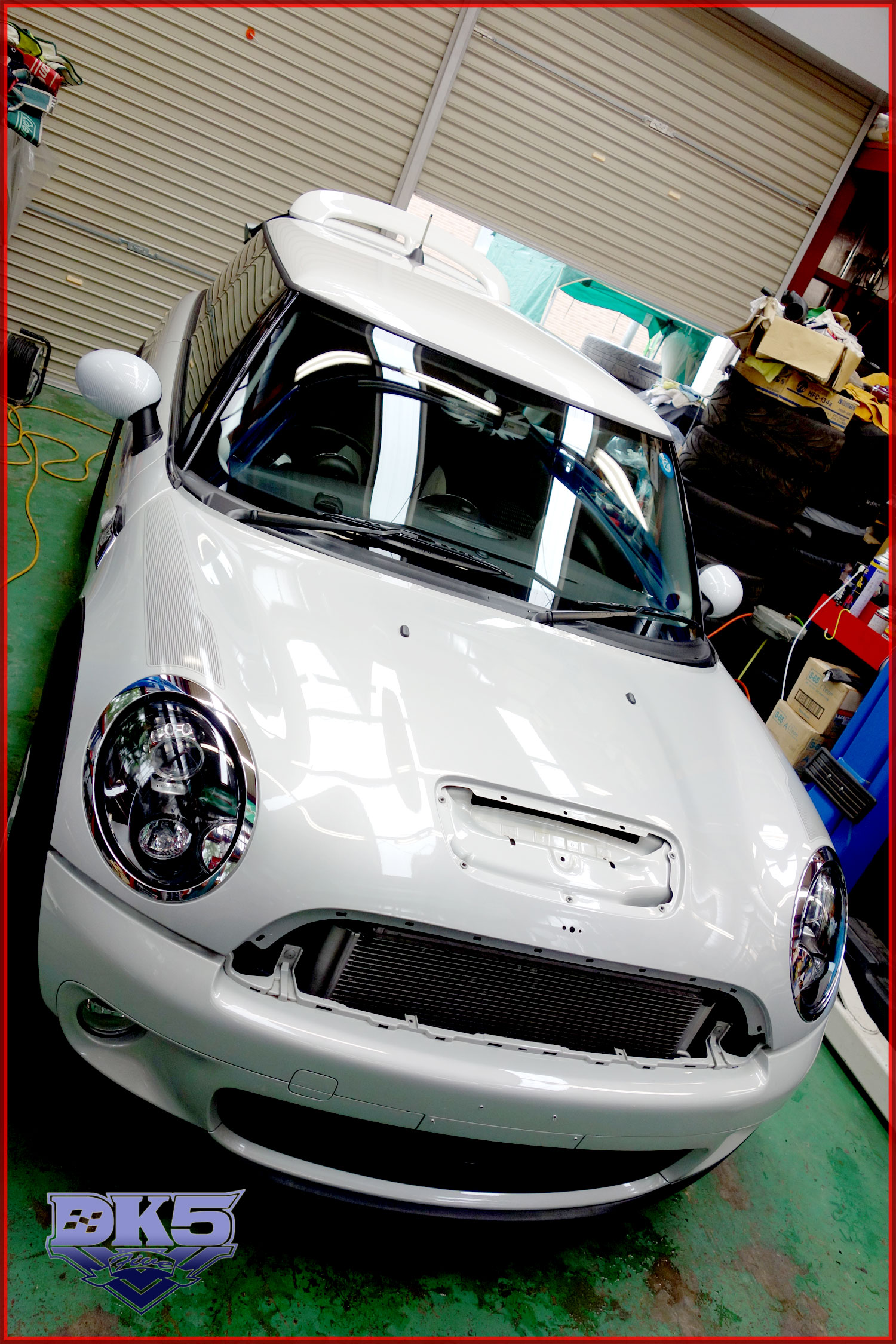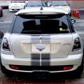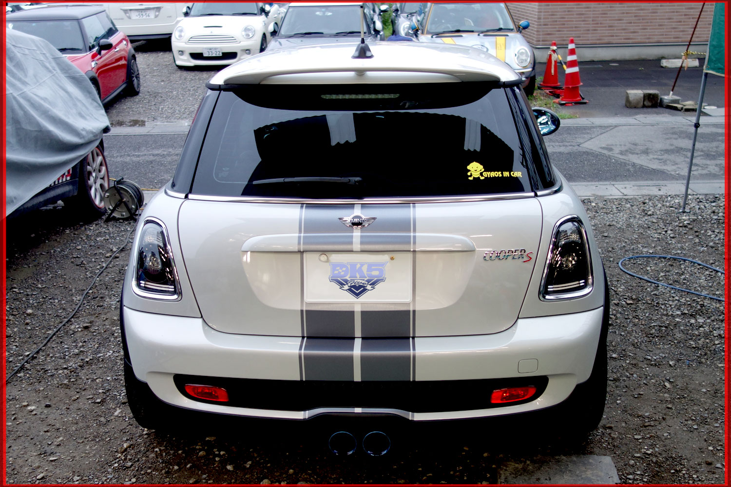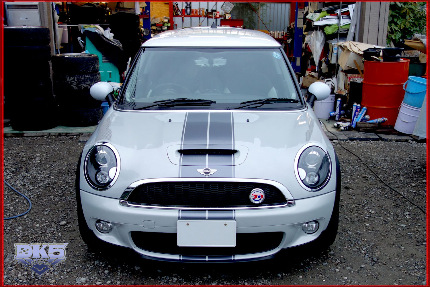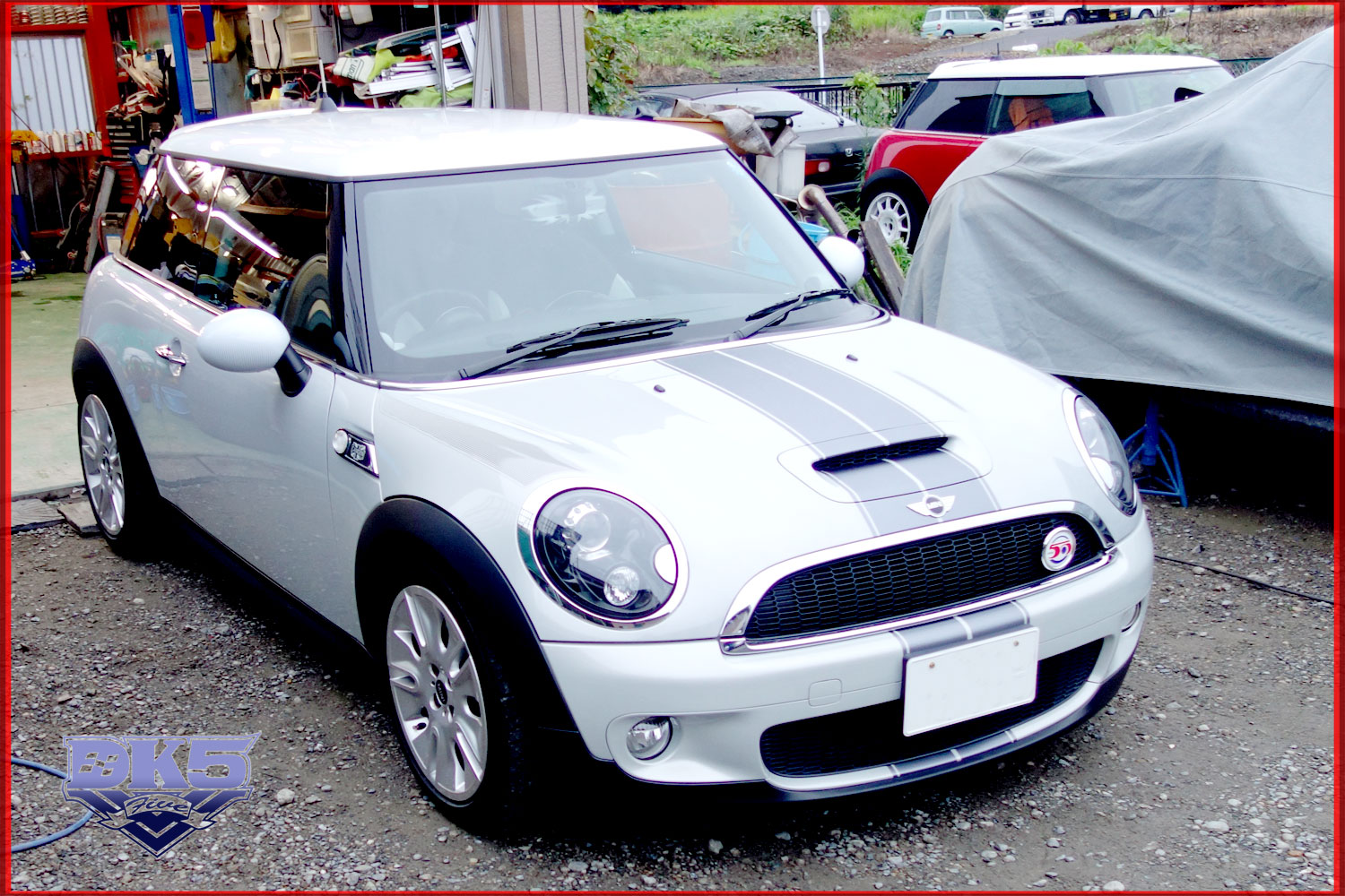 BMW MINI ボンネットストライプ, 制作例のご紹介 BMW MINI R56 CAMDENに、センターストライプ。 2015年9月17日 / BMW MINI R56 CAMDENに、センターストライプを施工しました。 ルーフは無しで、施工箇所は、フロントバンパー、ボンネット。 リアハッチ、リアバンパーです。 使ったシートはブラッシュタイプの素材です。 こちらのシートは貼った部分が、金属っぽく見えるようになるのが特徴です。 光の当たり方で素材感が、変わって見えるので、カッコイイですよ! 作業しやすいように、邪魔なパーツを外して・・・ 出来上がりです! ストライプのないのも好きですが、ストライプを入れると雰囲気が変わって良いですね^^