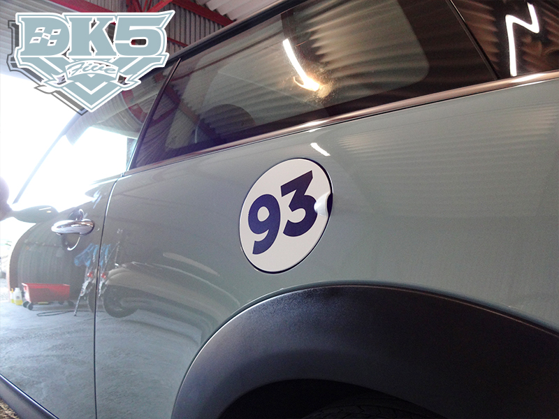 埼玉県富士見市のDK5です。 BMW MINI F54 CLUBMAN ボルカニックオレンジに、マットブラックでユニオンジャックを サイドに大きく入れました。(左側のみ) 施工後です。 ユニオンジャックにちょこっと文字を…